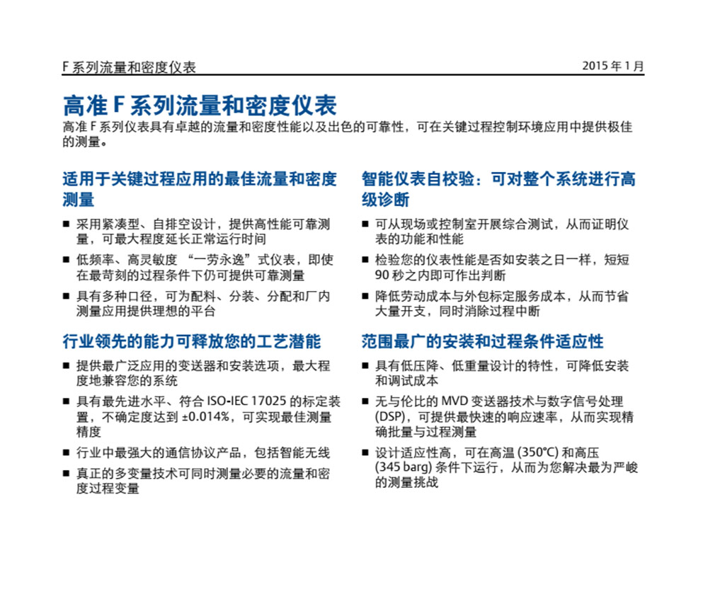 名稱:高準(zhǔn) (Micro Motion®) F 系列流量和密度儀表